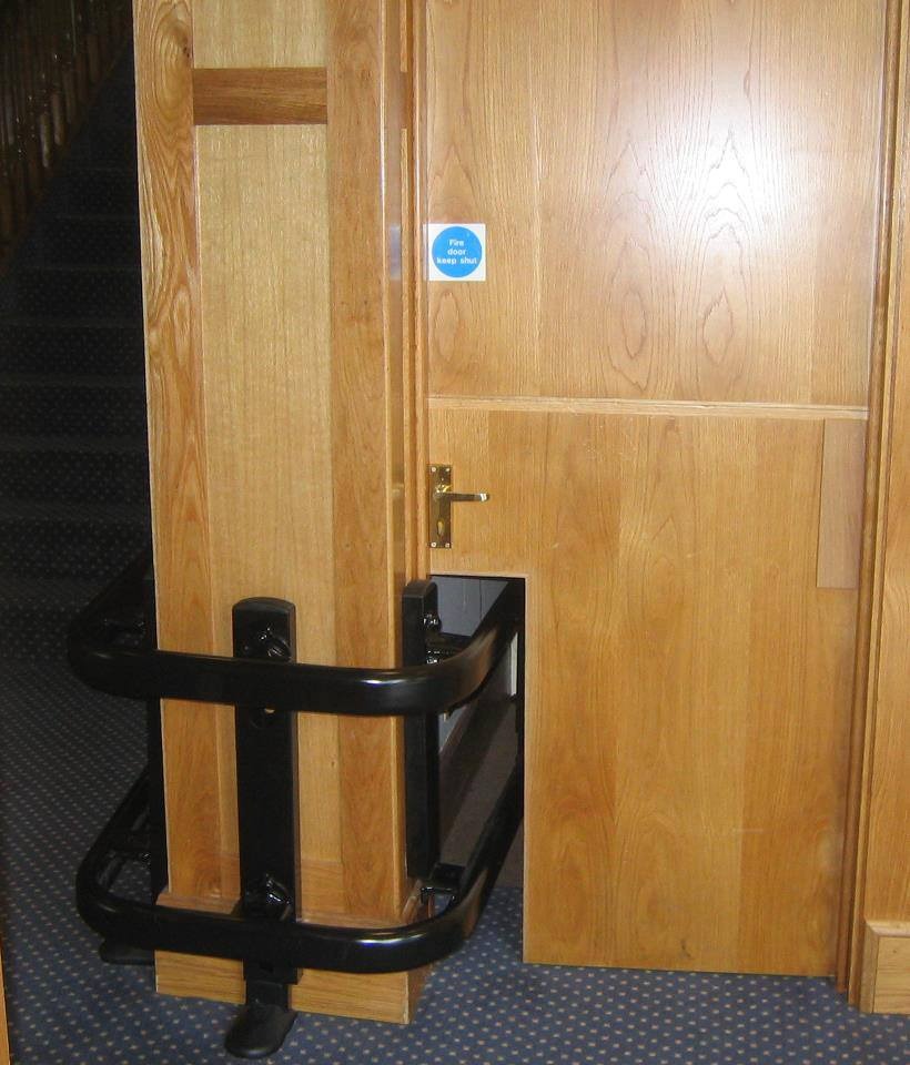 The “Winner” showed a terrible example of a fire door in a care home, adapted to fit around a stair lift.