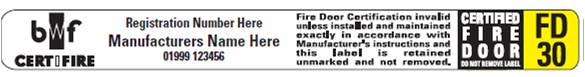 In order for fire door manufacturers to become members of the BWF-CERTIFIRE Scheme, they must meet strict requirements including fire door designs being tested to BS 476 part 22 or EN1634 Part 1, fire doors being produced within the scope of the fire test data sheet, audits undertaken annually to ensure the quality and performance of the fire door, a BWF-CERTIFIRE scheme label attached to every door produced and a detailed installation instruction to every fire door producer to ensure correct manufacturing and/or installation.
